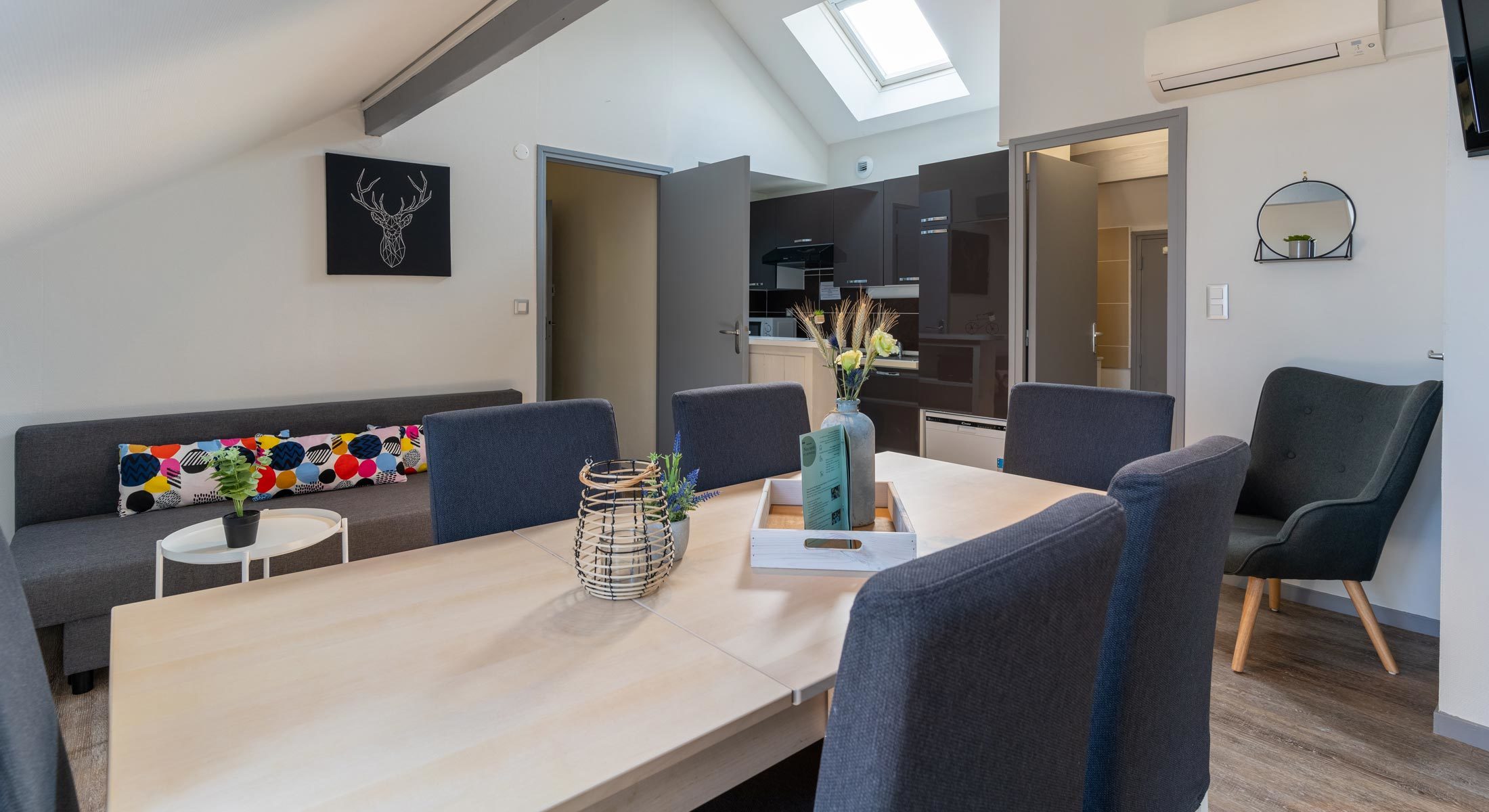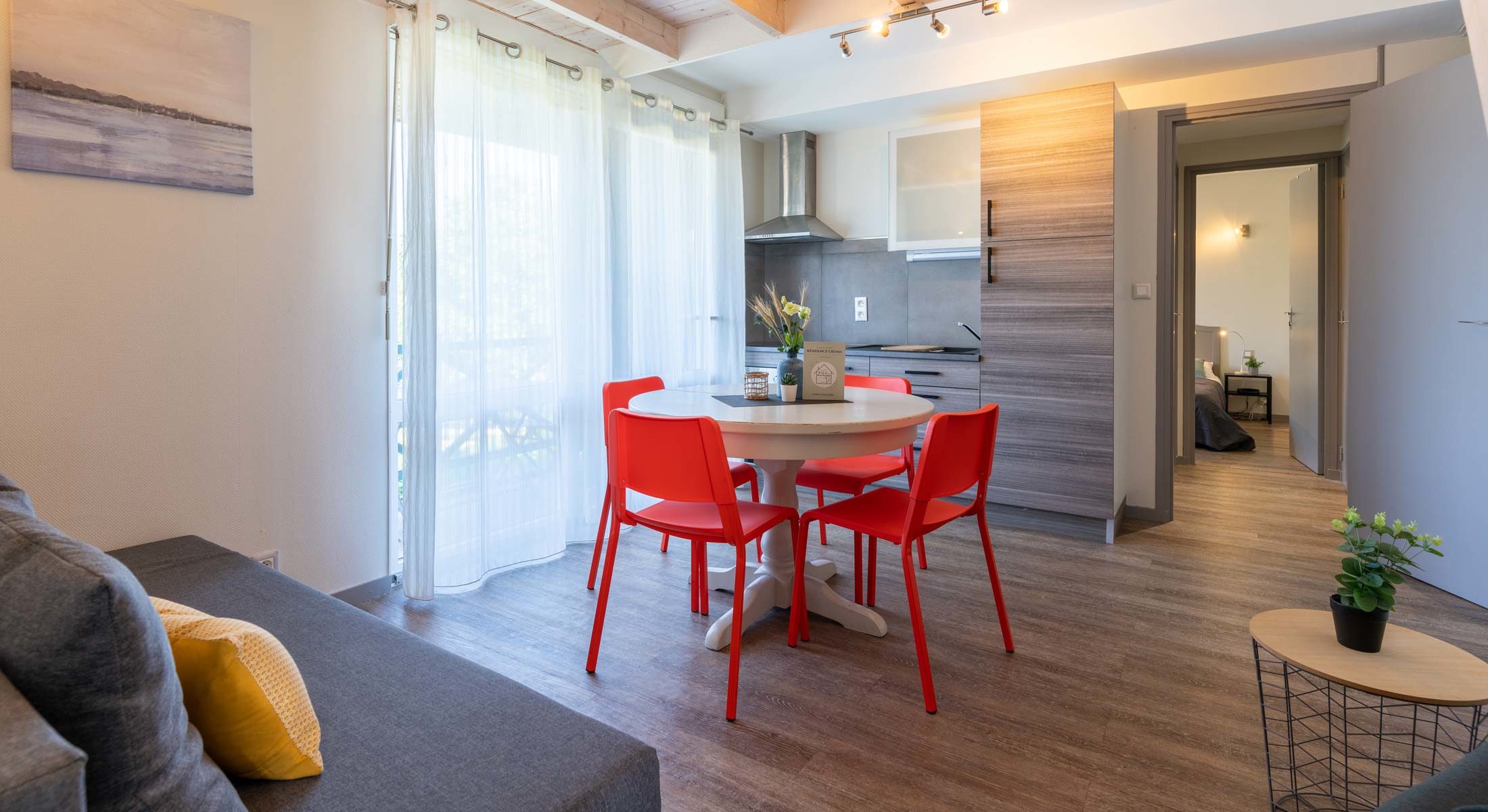 You can choose from several accommodation types, ranging from studio and one-bedroom apartments to two-bedroom duplex apartments and large family apartments on the first floor with two large bedrooms.