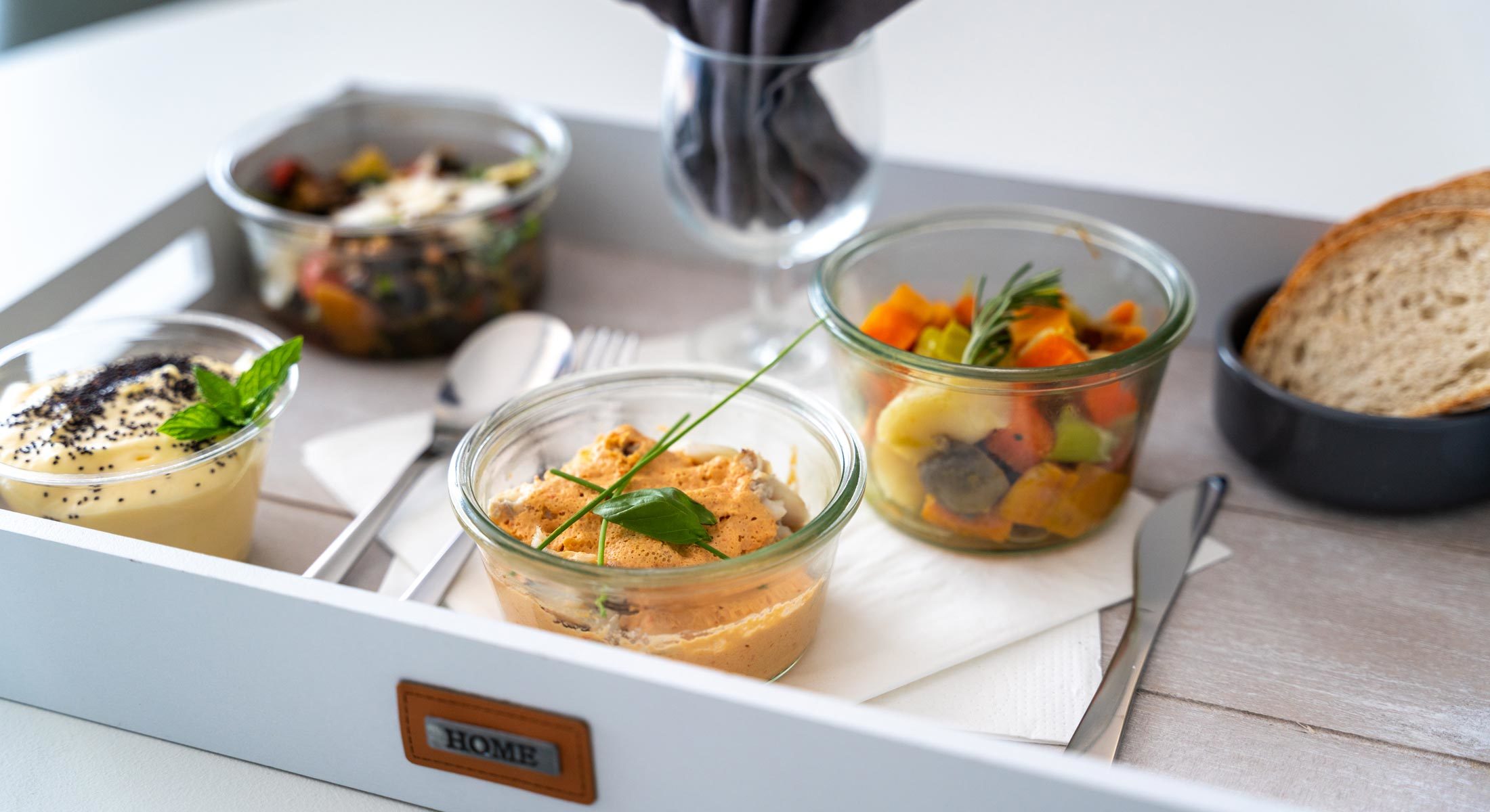 Enjoy a delicious meal at your leisure with our in-room packed lunch service. Presented in attractive glass jars, ready to heat, the meal is prepared by a local chef using fresh ingredients.